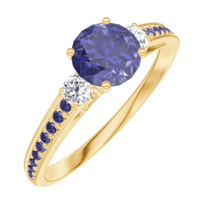 « L'ATELIER » N.º 1002224Anillo Oro amarillo 9 quilates - Zafiro sintético redondo 0.5 quilates - Piedras laterales Diamante de laboratorio - Engastado Zafiro azul 4.5