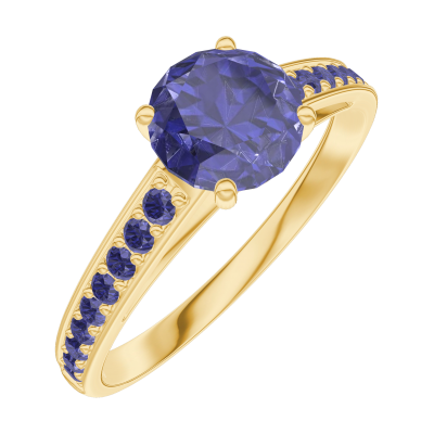 « L'ATELIER » N.º 1003648Anillo Oro amarillo 9 quilates - Zafiro sintético redondo 0.7 quilates - Engastado Zafiro azul 4.9
