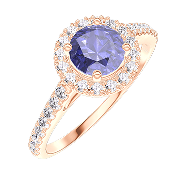 « L'ATELIER » N.º 1009926Anillo Oro rosa 9 quilates - Zafiro sintético redondo 0.5 quilates - Halo Diamante de laboratorio - Engastado Diamante de laboratorio 4.7