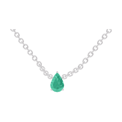 « L'ATELIER » N.º 1013606Collar Oro blanco 9 quilates - Esmeralda sintética Pera 0.3 quilates - Cadenas Esclavas