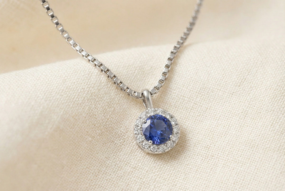 « L'ATELIER » N.º 1014901Colgante Oro blanco 18 quilates - Zafiro sintético redondo 0.3 quilates - Halo Diamante de laboratorio - Cadenas Veneciana 4