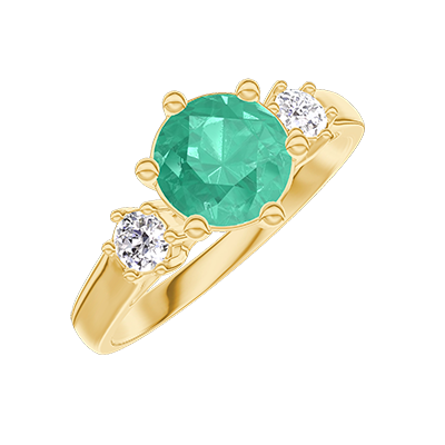 « L'ATELIER » Nº1067543Anillo Oro amarillo 18 quilates - Esmeralda sintética redondo 0.7 quilates - Piedras laterales Diamante de laboratorio