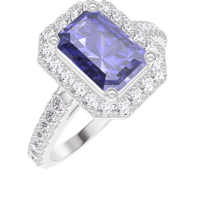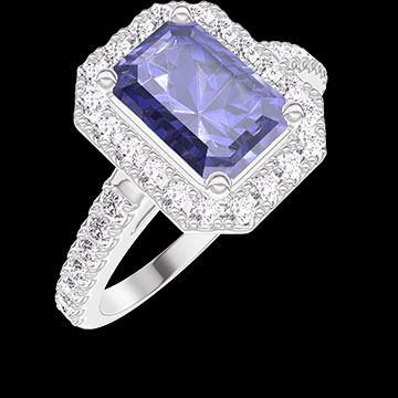 « L'ATELIER » N.º 1276567Anillo Oro blanco 9 quilates - Zafiro azul Rectángulo 1 quilates - Halo Diamante - Engastado Diamante