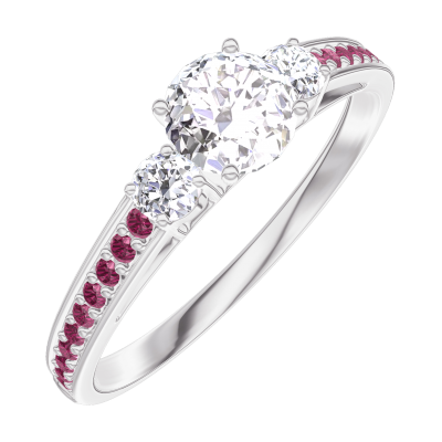« L'ATELIER » N.º 160032Anillo Oro blanco 9 quilates - Diamante redondo 0.3 quilates - Piedras laterales Diamante - Engastado Rubí 4.5