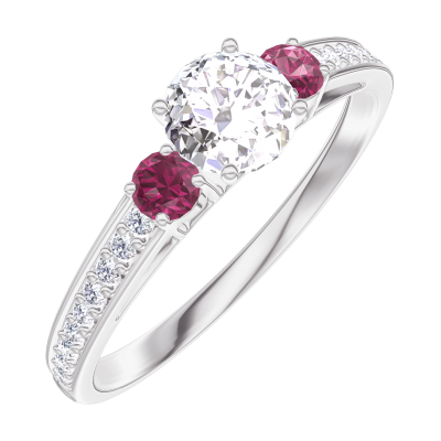 « L'ATELIER » Nº160047Anillo Oro blanco 18 quilates - Diamante redondo 0.3 quilates - Piedras laterales Rubí - Engastado Diamante 4.5