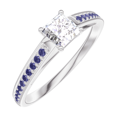 « L'ATELIER » Nº160115Anillo Oro blanco 18 quilates - Diamante Princesa 0.3 quilates - Engastado Zafiro azul