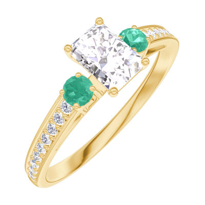 « L'ATELIER » N.º 160285Anillo Oro amarillo 18 quilates - Diamante Rectángulo 0.3 quilates - Piedras laterales Esmeralda - Engastado Diamante