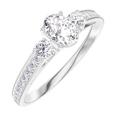 « L'ATELIER » N.º 160328Anillo Oro blanco 9 quilates - Diamante Ovalo 0.3 quilates - Piedras laterales Diamante - Engastado Diamante 5