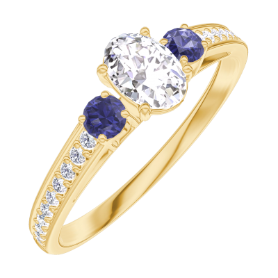 « L'ATELIER » Nº160365Anillo Oro amarillo 18 quilates - Diamante Ovalo 0.3 quilates - Piedras laterales Zafiro azul - Engastado Diamante 5