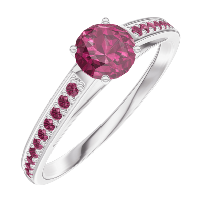 « L'ATELIER » Nº160612Anillo Oro blanco 9 quilates - Rubí redondo 0.3 quilates - Engastado Rubí 4.5