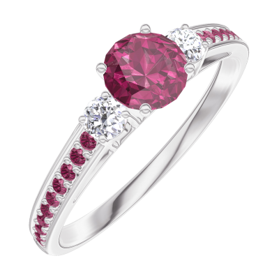 « L'ATELIER » Nº160631Anillo Oro blanco 18 quilates - Rubí redondo 0.3 quilates - Piedras laterales Diamante - Engastado Rubí 4.5