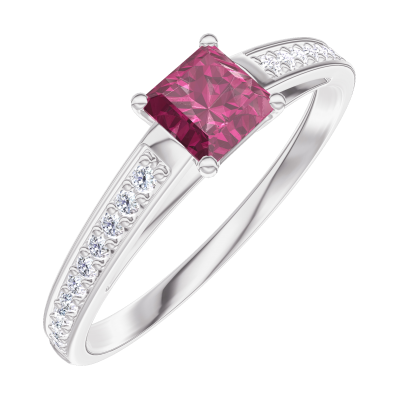 « L'ATELIER » N.º 160707Anillo Oro blanco 18 quilates - Rubí Princesa 0.3 quilates - Engastado Diamante
