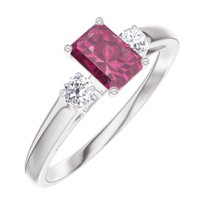 « L'ATELIER » N.º 160824Anillo Oro blanco 9 quilates - Rubí Rectángulo 0.3 quilates - Piedras laterales Diamante