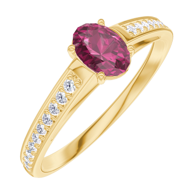« L'ATELIER » Nº160906Anillo Oro amarillo 9 quilates - Rubí Ovalo 0.3 quilates - Engastado Diamante 5