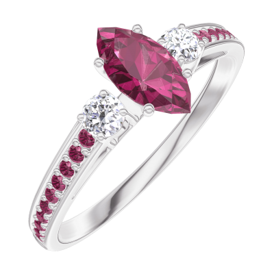 « L'ATELIER » Nº161131Anillo Oro blanco 18 quilates - Rubí Marquesa 0.3 quilates - Piedras laterales Diamante - Engastado Rubí