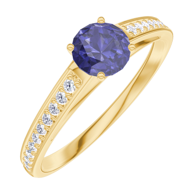 « L'ATELIER » N.º 161206Anillo Oro amarillo 9 quilates - Zafiro azul redondo 0.3 quilates - Engastado Diamante 4.5 (36)