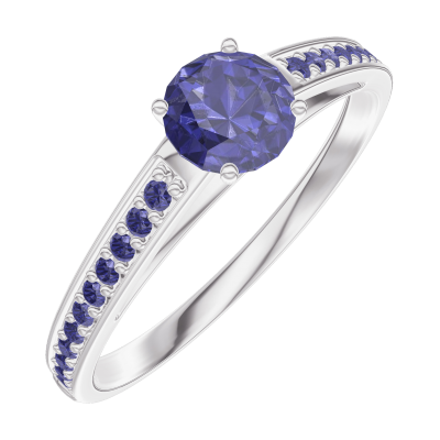 « L'ATELIER » Nº161215Anillo Oro blanco 18 quilates - Zafiro azul redondo 0.3 quilates - Engastado Zafiro azul 4.5