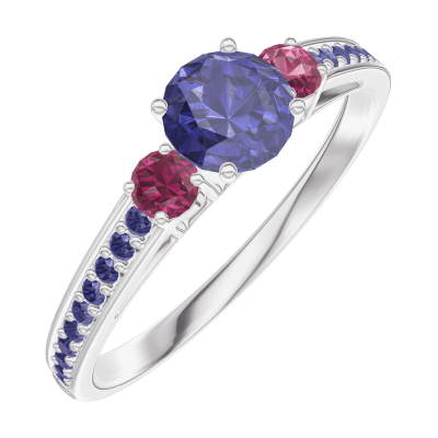 « L'ATELIER » Nº161256Anillo Oro blanco 9 quilates - Zafiro azul redondo 0.3 quilates - Piedras laterales Rubí - Engastado Zafiro azul 4.5