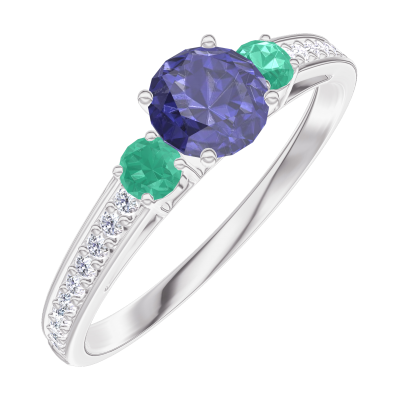« L'ATELIER » Nº161287Anillo Oro blanco 18 quilates - Zafiro azul redondo 0.3 quilates - Piedras laterales Esmeralda - Engastado Diamante 4.5