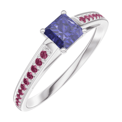 « L'ATELIER » Nº161312Anillo Oro blanco 9 quilates - Zafiro azul Princesa 0.3 quilates - Engastado Rubí