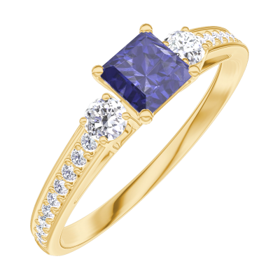 « L'ATELIER » N.º 161325Anillo Oro amarillo 18 quilates - Zafiro azul Princesa 0.3 quilates - Piedras laterales Diamante - Engastado Diamante