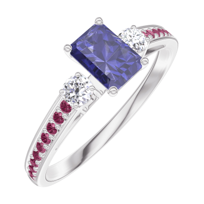 « L'ATELIER » Nº161431Anillo Oro blanco 18 quilates - Zafiro azul Rectángulo 0.3 quilates - Piedras laterales Diamante - Engastado Rubí