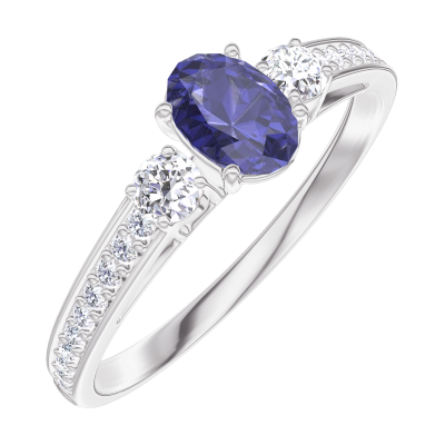 « L'ATELIER » N.º 161527Anillo Oro blanco 18 quilates - Zafiro azul Ovalo 0.3 quilates - Piedras laterales Diamante - Engastado Diamante 5
