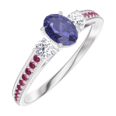 « L'ATELIER » Nº161531Anillo Oro blanco 18 quilates - Zafiro azul Ovalo 0.3 quilates - Piedras laterales Diamante - Engastado Rubí 5
