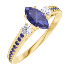 Anillo Oro amarillo 18 quilates - Zafiro azul Marquesa 0.3 quilates - Piedras laterales Diamante - Engastado Zafiro azul
