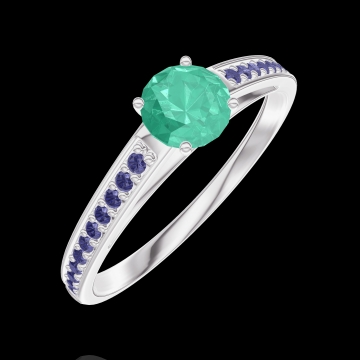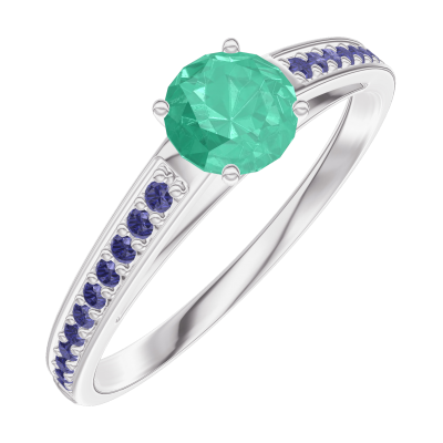 Anillo Oro blanco 18 quilates - Esmeralda Redondo 0.3 quilates - Engastado Zafiro azul