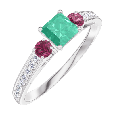 « L'ATELIER » N.º 161948Anillo Oro blanco 9 quilates - Esmeralda Princesa 0.3 quilates - Piedras laterales Rubí - Engastado Diamante