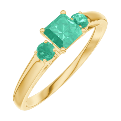 « L'ATELIER » N.º 161981Anillo Oro amarillo 18 quilates - Esmeralda Princesa 0.3 quilates - Piedras laterales Esmeralda