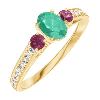 « L'ATELIER » Nº162145Anillo Oro amarillo 18 quilates - Esmeralda Ovalo 0.3 quilates - Piedras laterales Rubí - Engastado Diamante 5