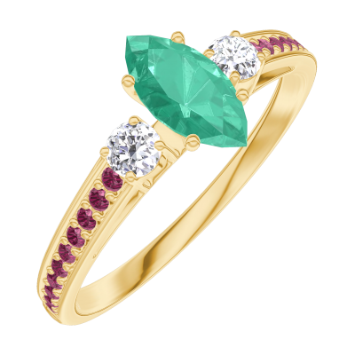 « L'ATELIER » Nº162330Anillo Oro amarillo 9 quilates - Esmeralda Marquesa 0.3 quilates - Piedras laterales Diamante - Engastado Rubí