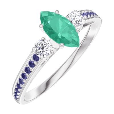 « L'ATELIER » Nº162335Anillo Oro blanco 18 quilates - Esmeralda Marquesa 0.3 quilates - Piedras laterales Diamante - Engastado Zafiro azul