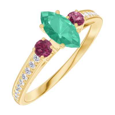 « L'ATELIER » Nº162345Anillo Oro amarillo 18 quilates - Esmeralda Marquesa 0.3 quilates - Piedras laterales Rubí - Engastado Diamante