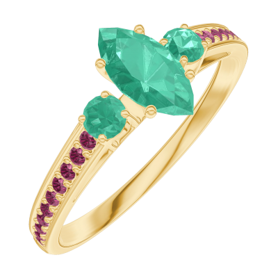 « L'ATELIER » N.º 162389Anillo Oro amarillo 18 quilates - Esmeralda Marquesa 0.3 quilates - Piedras laterales Esmeralda - Engastado Rubí