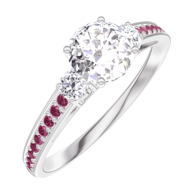 « L'ATELIER » N.º 162431Anillo Oro blanco 18 quilates - Diamante redondo 0.5 quilates - Piedras laterales Diamante - Engastado Rubí 4.5