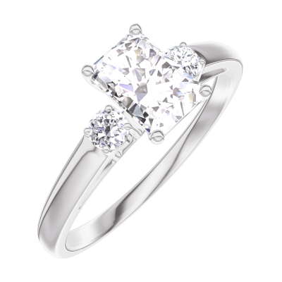 « L'ATELIER » N.º 162623Anillo Oro blanco 18 quilates - Diamante Rectángulo 0.5 quilates - Piedras laterales Diamante