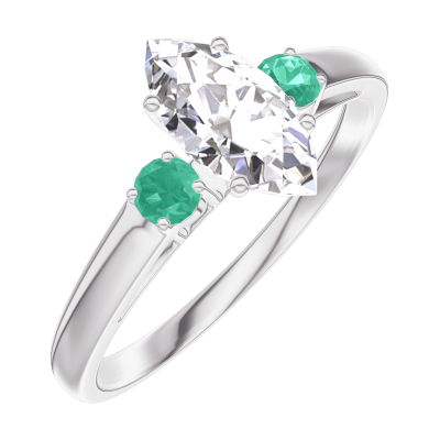 « L'ATELIER » N.º 162984Anillo Oro blanco 9 quilates - Diamante Marquesa 0.5 quilates - Piedras laterales Esmeralda