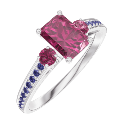 « L'ATELIER » N.º 163256Anillo Oro blanco 9 quilates - Rubí Rectángulo 0.5 quilates - Piedras laterales Rubí - Engastado Zafiro azul