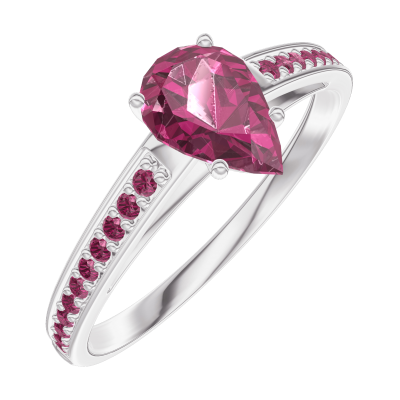 « L'ATELIER » Nº163412Anillo Oro blanco 9 quilates - Rubí Pera 0.5 quilates - Engastado Rubí