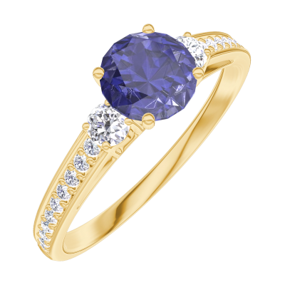 « L'ATELIER » N.º 163625Anillo Oro amarillo 18 quilates - Zafiro azul redondo 0.5 quilates - Piedras laterales Diamante - Engastado Diamante 4.5