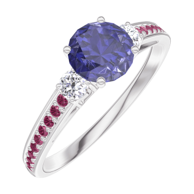 « L'ATELIER » N.º 163631Anillo Oro blanco 18 quilates - Zafiro azul redondo 0.5 quilates - Piedras laterales Diamante - Engastado Rubí 4.5