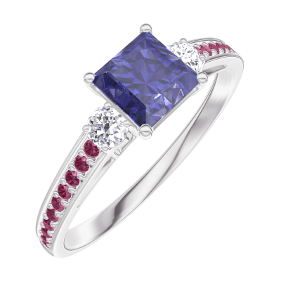 « L'ATELIER » Nº163732Anillo Oro blanco 9 quilates - Zafiro azul Princesa 0.5 quilates - Piedras laterales Diamante - Engastado Rubí