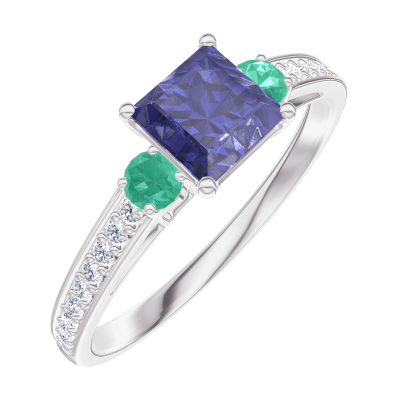 « L'ATELIER » N.º 163788Anillo Oro blanco 9 quilates - Zafiro azul Princesa 0.5 quilates - Piedras laterales Esmeralda - Engastado Diamante