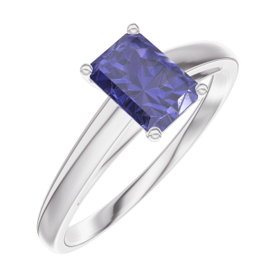 « L'ATELIER » N.º 163803Anillo Oro blanco 18 quilates - Zafiro azul Rectángulo 0.5 quilates
