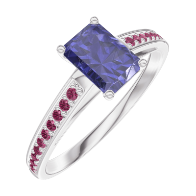 « L'ATELIER » Nº163812Anillo Oro blanco 9 quilates - Zafiro azul Rectángulo 0.5 quilates - Engastado Rubí