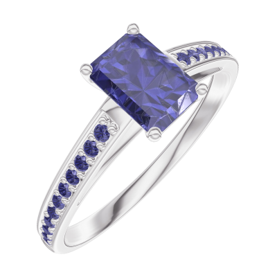 « L'ATELIER » N.º 163816Anillo Oro blanco 9 quilates - Zafiro azul Rectángulo 0.5 quilates - Engastado Zafiro azul