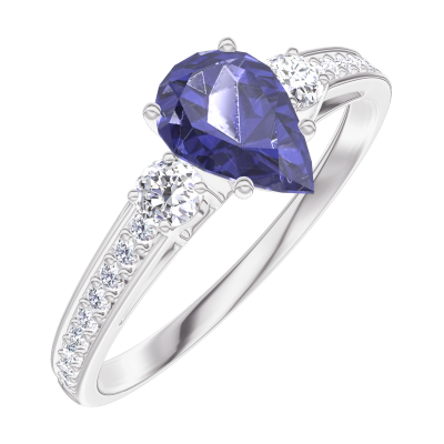 « L'ATELIER » N.º 164027Anillo Oro blanco 18 quilates - Zafiro azul Pera 0.5 quilates - Piedras laterales Diamante - Engastado Diamante